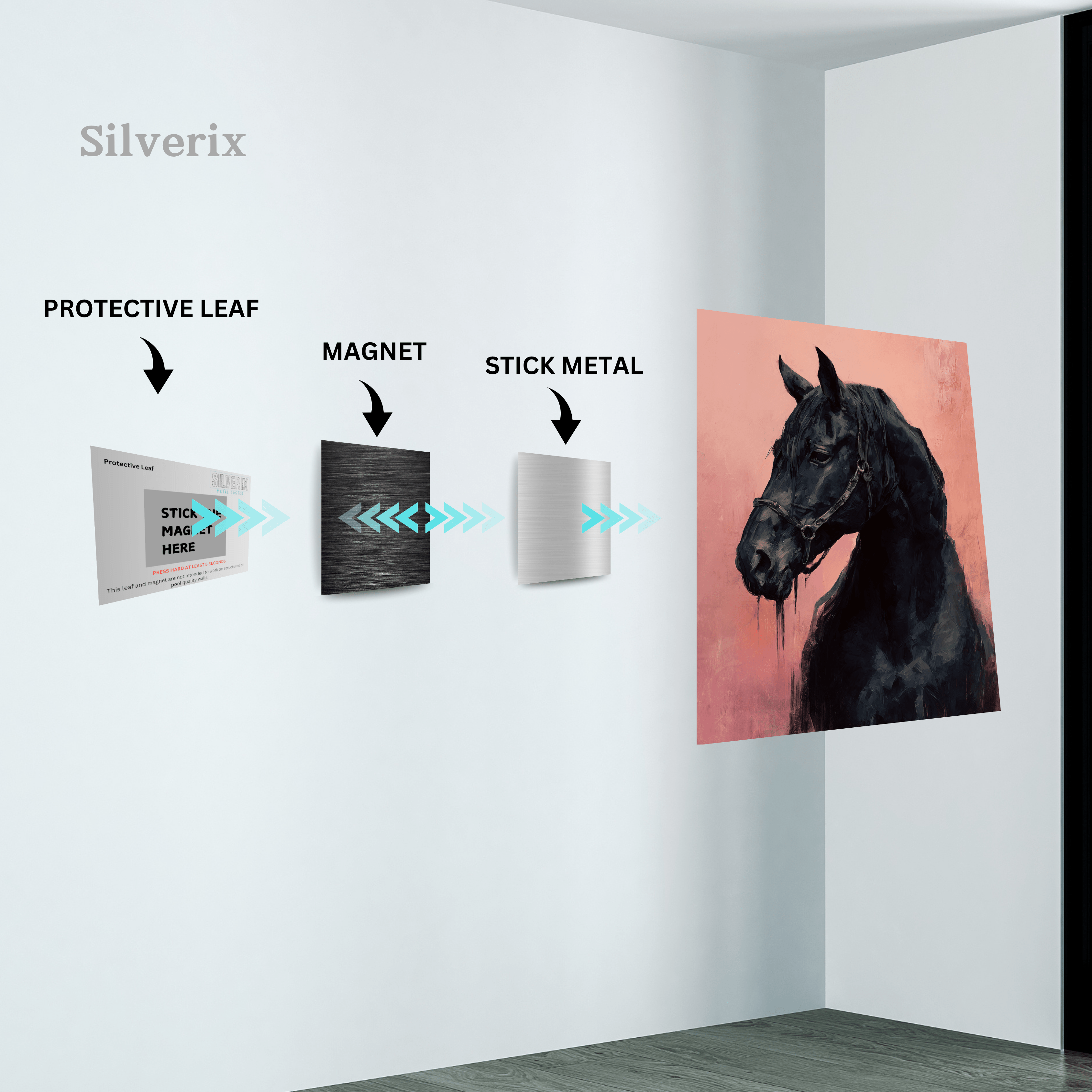 ⚠️ Ensure the position is final before applying, as the adhesive is strong. Step 4: Attach the Poster Magnet Attach the matching magnet securely to the back of the aluminium poster. Ensure correct alignment with the wall magnet. Step 5: Mount the Poster Align the poster magnet with the wall magnet. Gently place the poster onto the wall. The magnets will connect automatically, holding the poster securely.