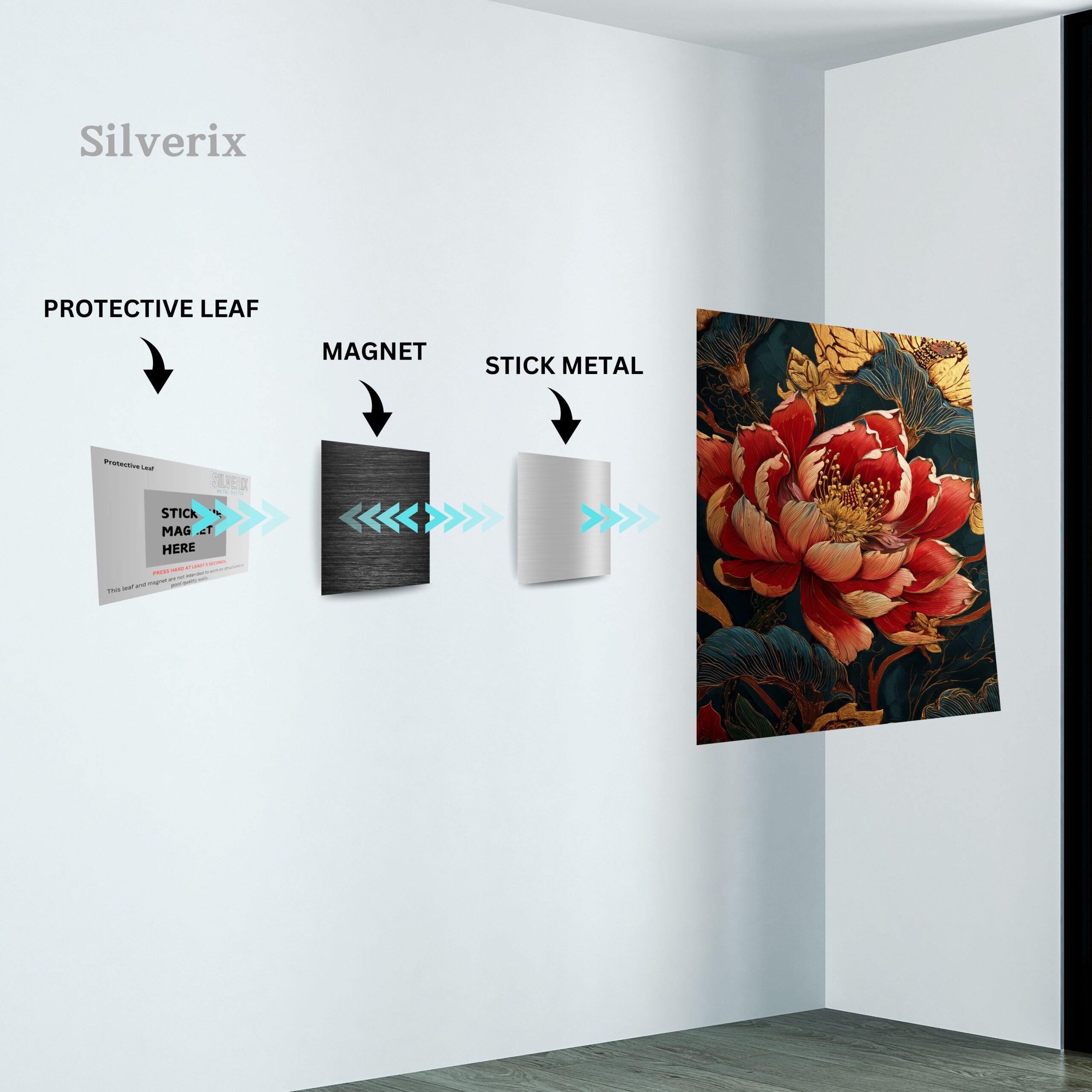⚠️ Ensure the position is final before applying, as the adhesive is strong. Step 4: Attach the Poster Magnet Attach the matching magnet securely to the back of the aluminium poster. Ensure correct alignment with the wall magnet. Step 5: Mount the Poster Align the poster magnet with the wall magnet. Gently place the poster onto the wall. The magnets will connect automatically, holding the poster securely.