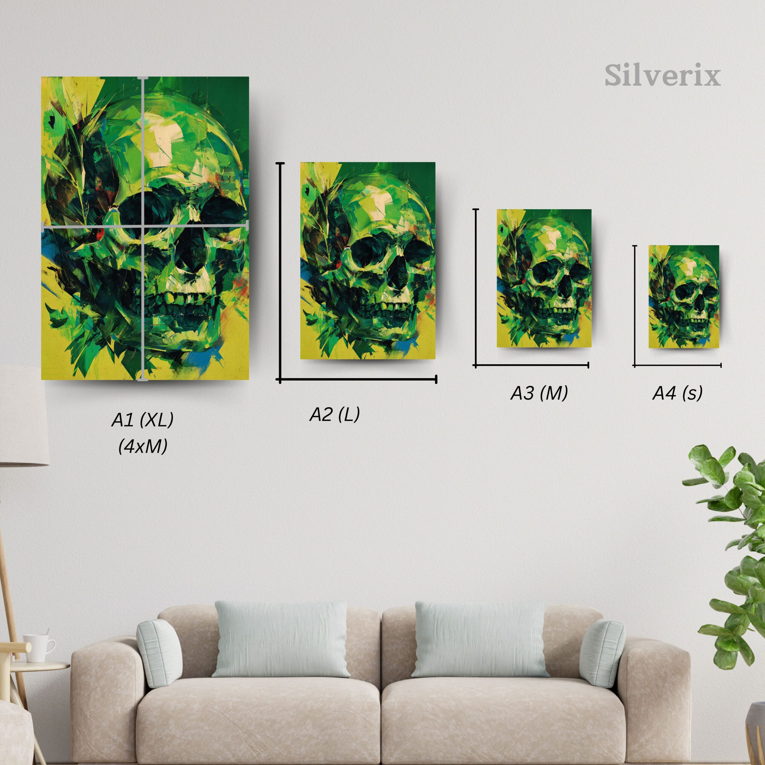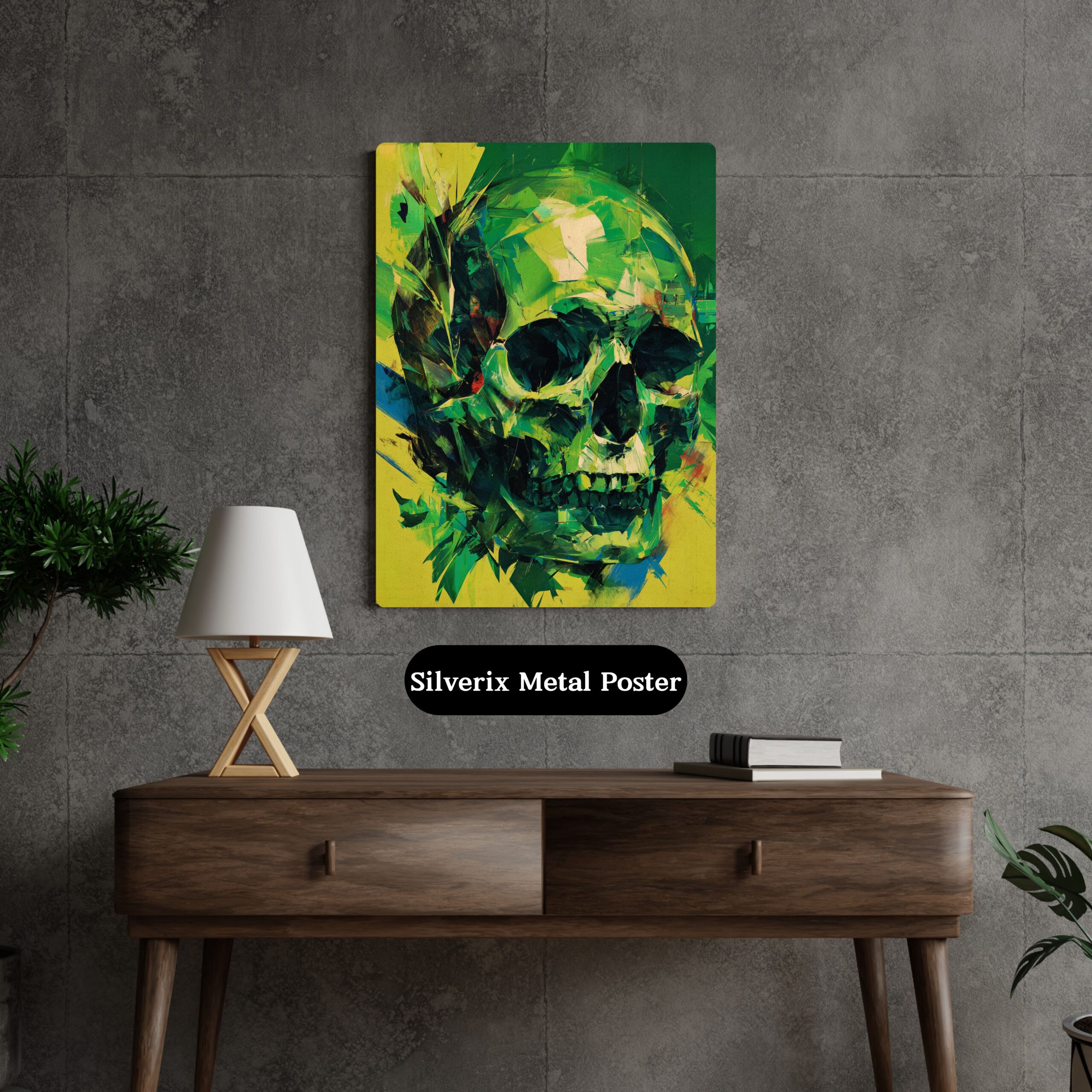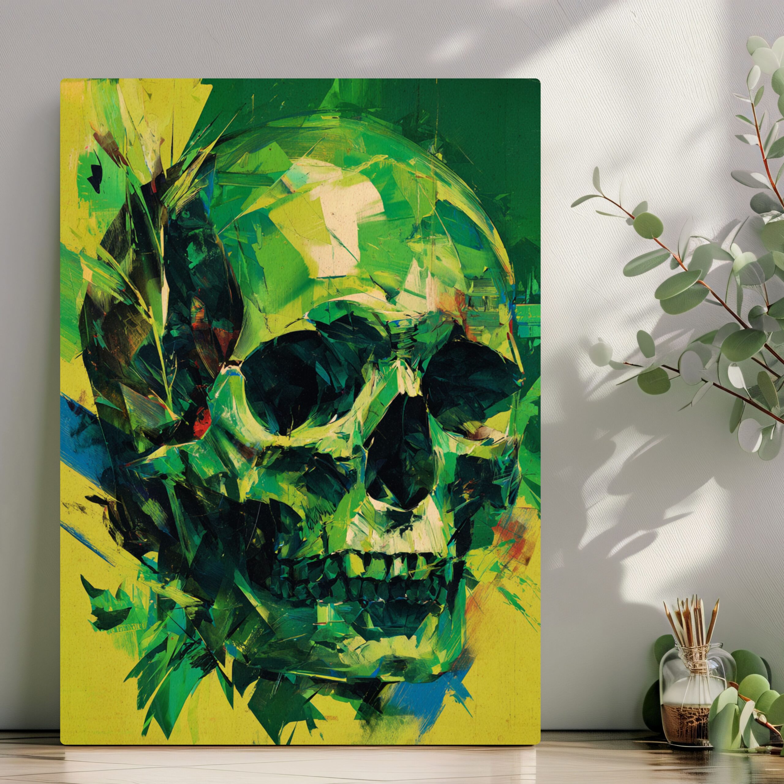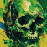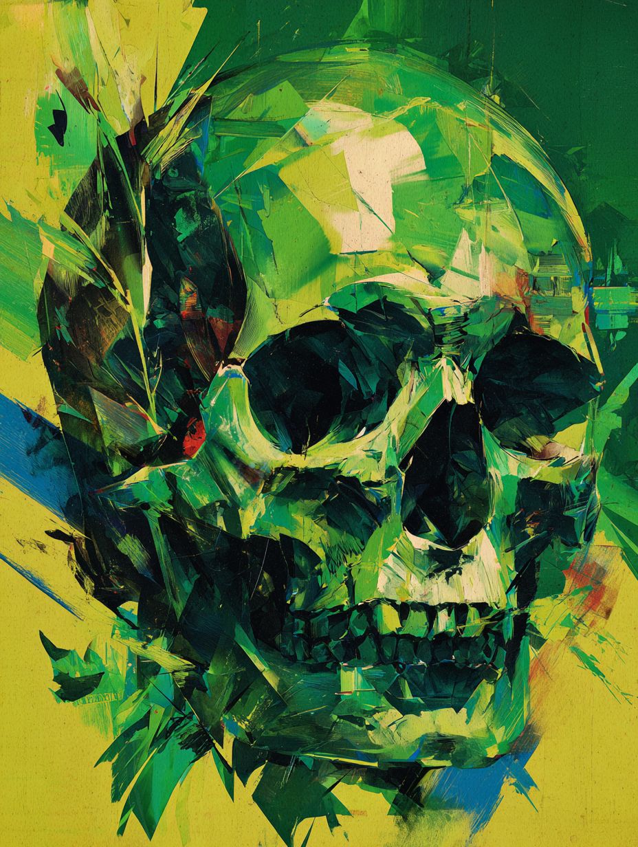 Abstrct Art Green Skull
