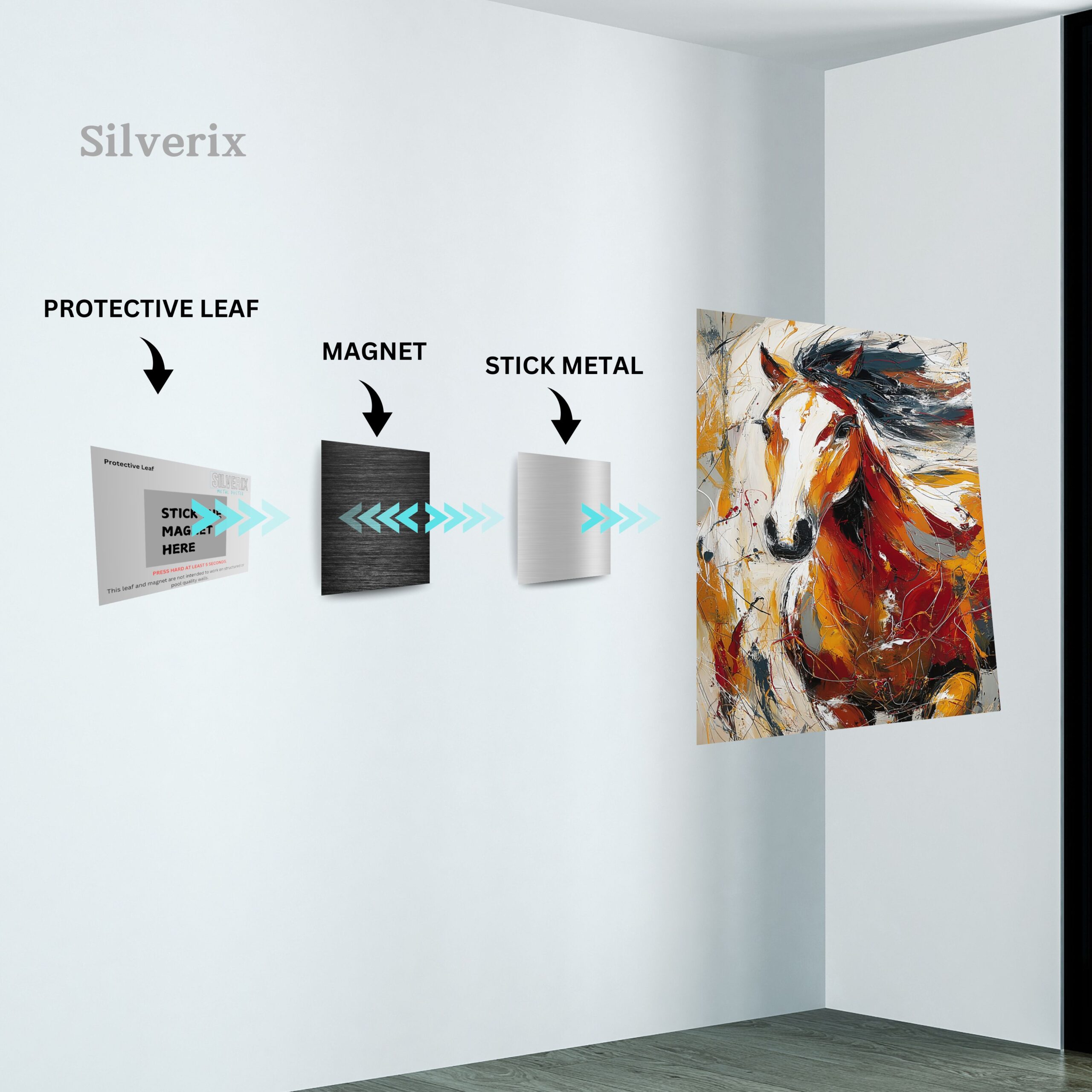 ⚠️ Ensure the position is final before applying, as the adhesive is strong. Step 4: Attach the Poster Magnet Attach the matching magnet securely to the back of the aluminium poster. Ensure correct alignment with the wall magnet. Step 5: Mount the Poster Align the poster magnet with the wall magnet. Gently place the poster onto the wall. The magnets will connect automatically, holding the poster securely.