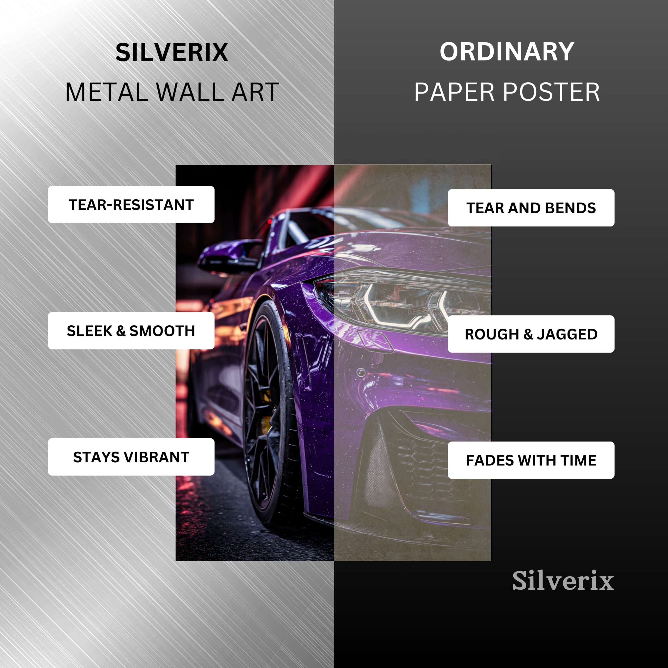 Turn your favourite Car photo, artwork, or design into a Premium Custom Metal Poster with a sleek, damage-free magnetic mount. Printed in vibrant Ultra HD on durable aluminium, your custom art will last a lifetime and make a bold statement on any wall. Perfect for gifts, home décor, or showcasing your love for classic cars in style.
