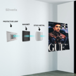 ⚠️ Ensure the position is final before applying, as the adhesive is strong. Step 4: Attach the Poster Magnet Attach the matching magnet securely to the back of the aluminium poster. Ensure correct alignment with the wall magnet. Step 5: Mount the Poster Align the poster magnet with the wall magnet. Gently place the poster onto the wall. The magnets will connect automatically, holding the poster securely.