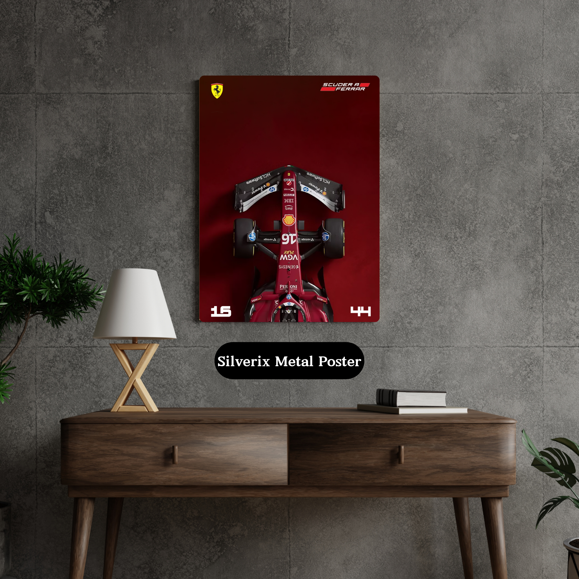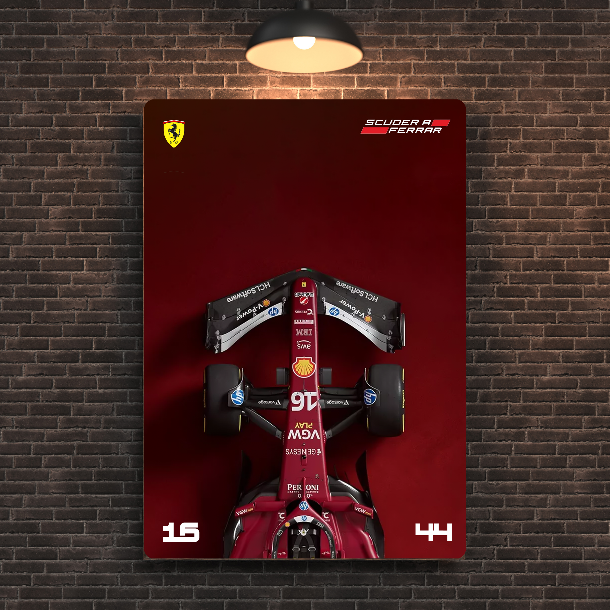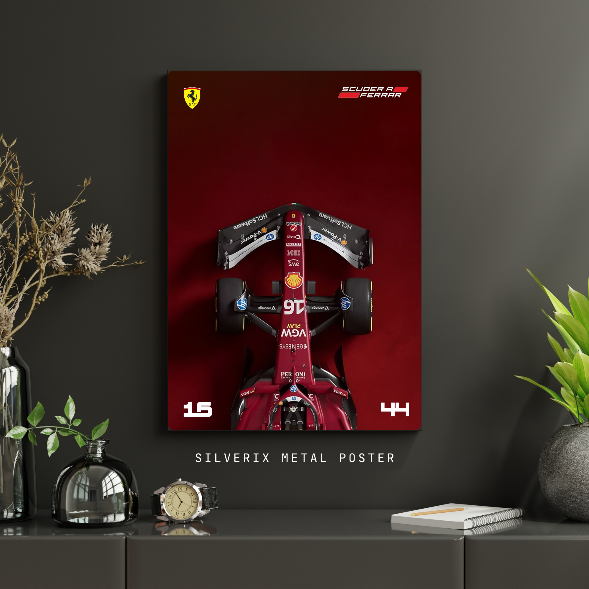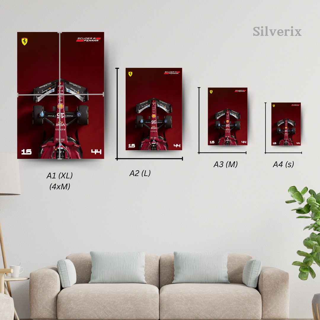 red F1 machine and rich racing heritage. Premium Ferrari F1 wall decor for Tifosi,