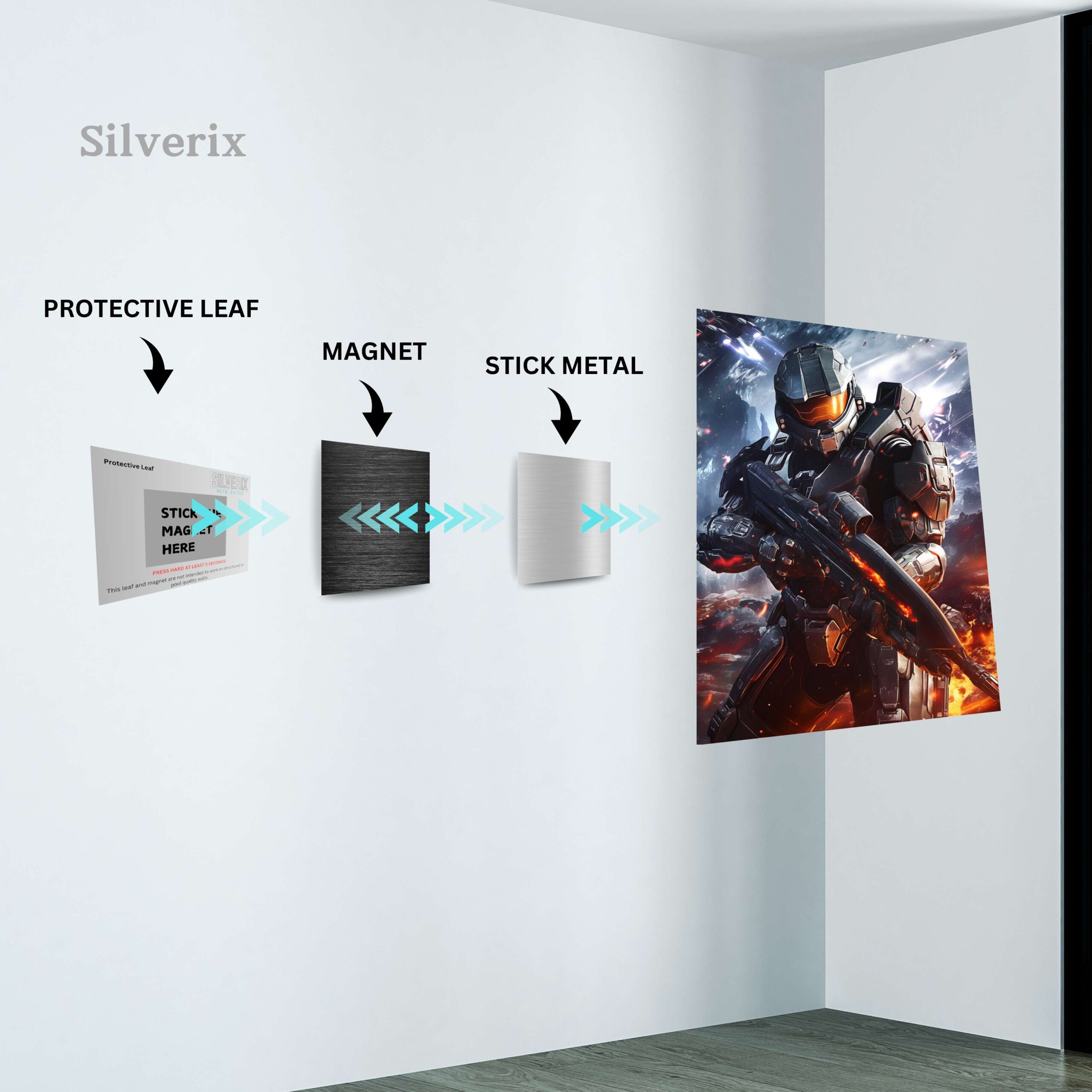 Printed on sturdy aluminium with a sleek matte finish, every poster showcases crisp colours, sharp details, and long-lasting durability. The damage-free magnetic mounting system lets you hang and reposition your poster anytime — no nails, no mess, no hassle.