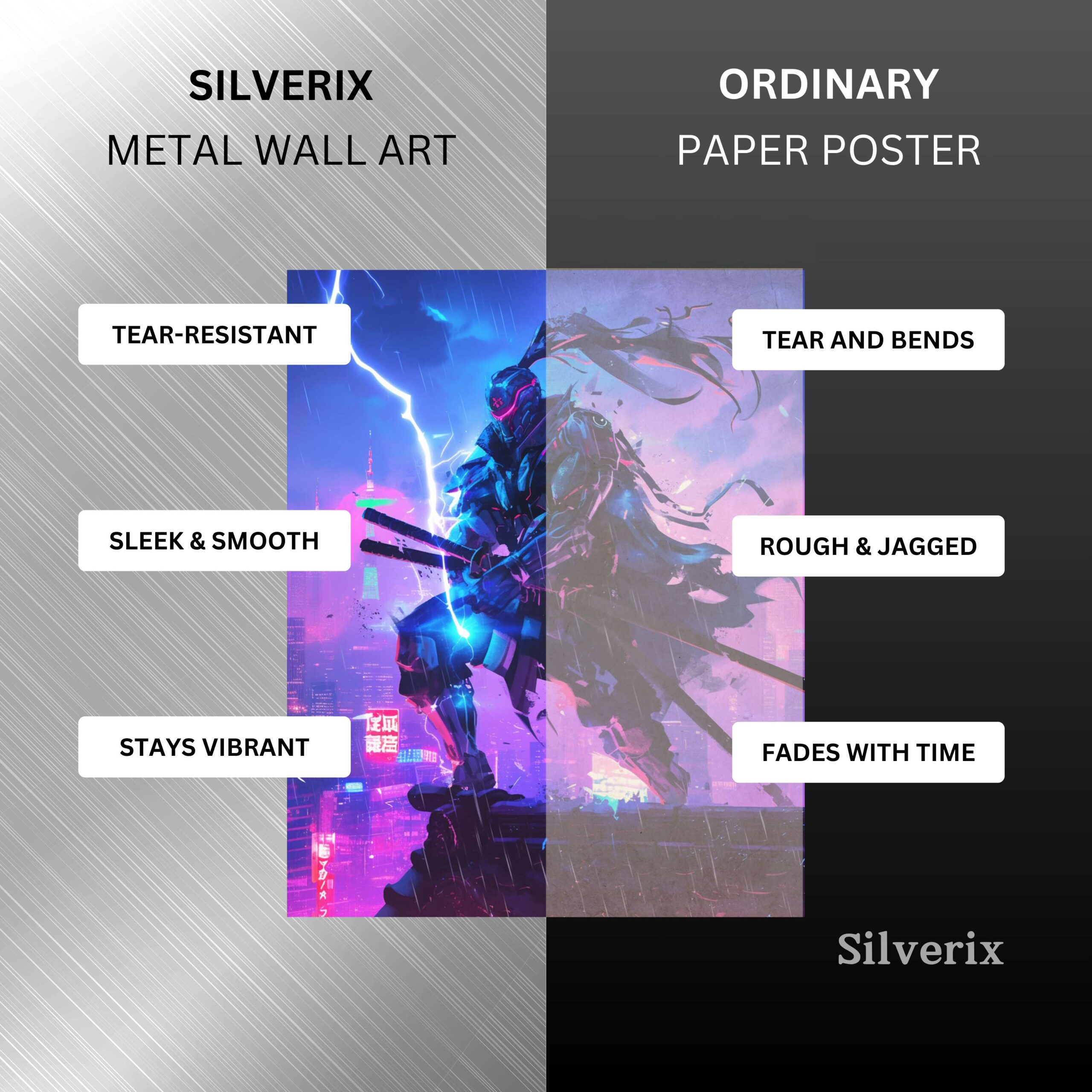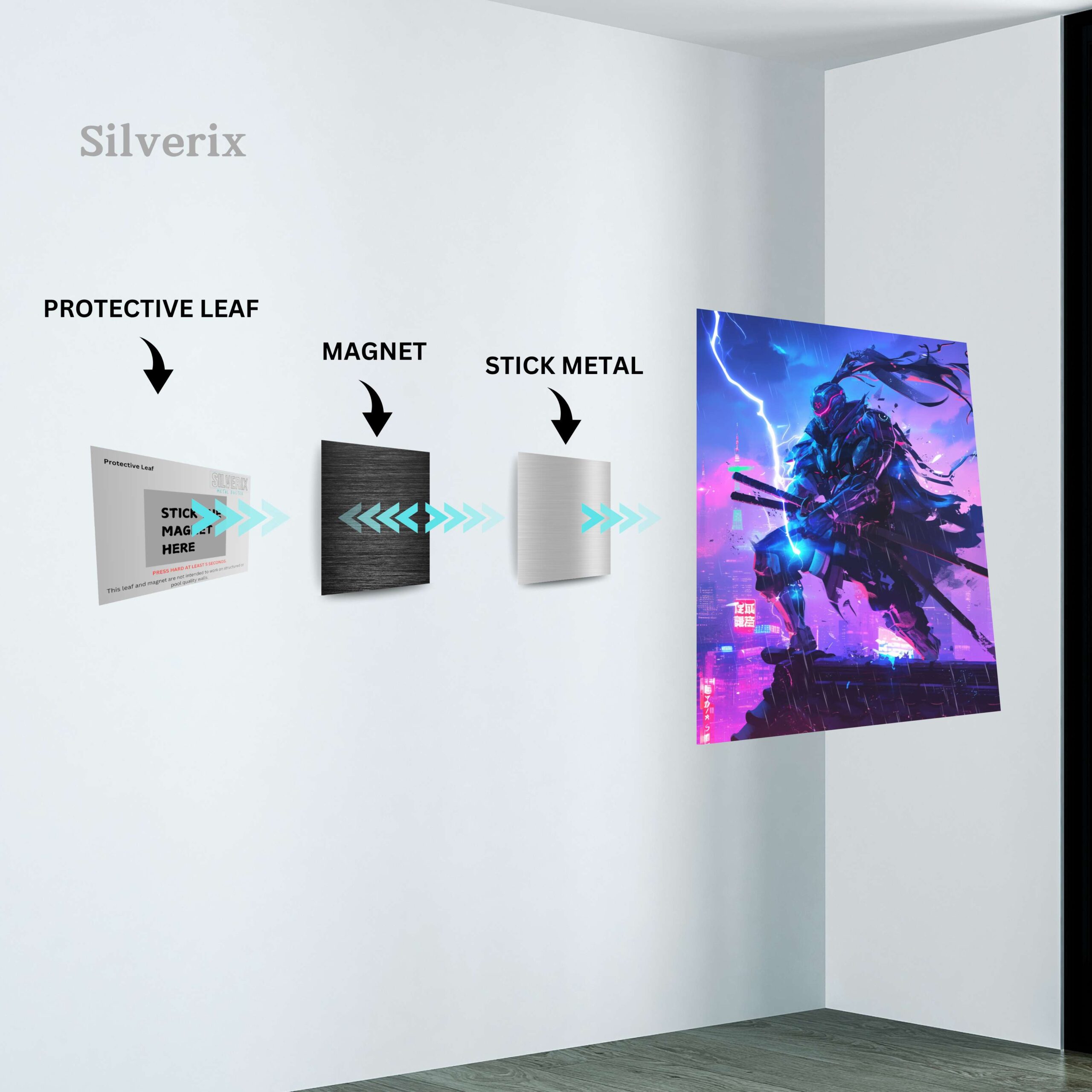 Printed on sturdy aluminium with a sleek matte finish, every poster showcases crisp colours, sharp details, and long-lasting durability. The damage-free magnetic mounting system lets you hang and reposition your poster anytime — no nails, no mess, no hassle.
