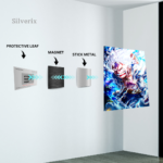 ⚠️ Ensure the position is final before applying, as the adhesive is strong. Step 4: Attach the Poster Magnet Attach the matching magnet securely to the back of the aluminium poster. Ensure correct alignment with the wall magnet. Step 5: Mount the Poster Align the poster magnet with the wall magnet. Gently place the poster onto the wall. The magnets will connect automatically, holding the poster securely.