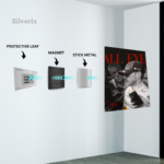 ⚠️ Ensure the position is final before applying, as the adhesive is strong. Step 4: Attach the Poster Magnet Attach the matching magnet securely to the back of the aluminium poster. Ensure correct alignment with the wall magnet. Step 5: Mount the Poster Align the poster magnet with the wall magnet. Gently place the poster onto the wall. The magnets will connect automatically, holding the poster securely.