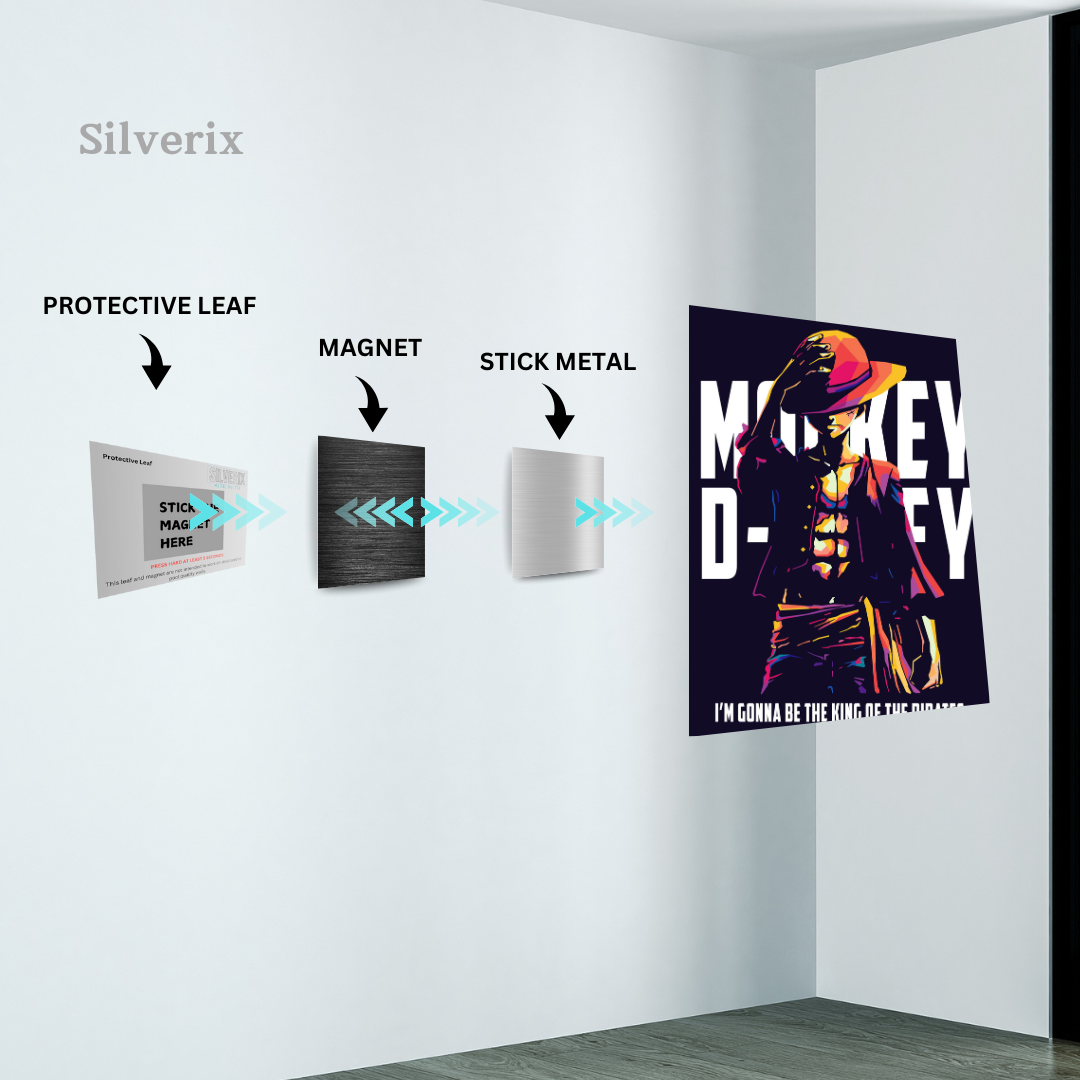 ⚠️ Ensure the position is final before applying, as the adhesive is strong. Step 4: Attach the Poster Magnet Attach the matching magnet securely to the back of the aluminium poster. Ensure correct alignment with the wall magnet. Step 5: Mount the Poster Align the poster magnet with the wall magnet. Gently place the poster onto the wall. The magnets will connect automatically, holding the poster securely.