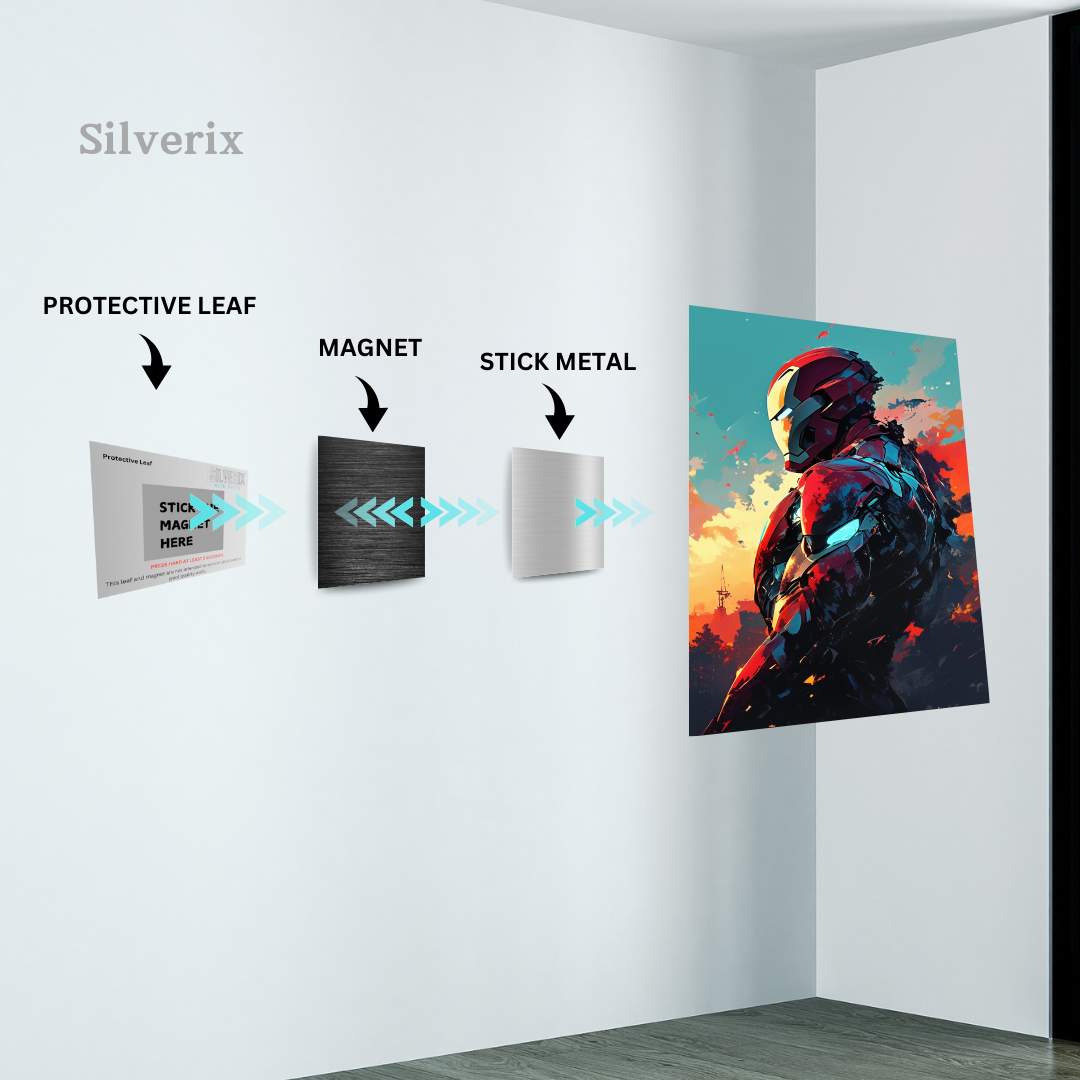 ⚠️ Ensure the position is final before applying, as the adhesive is strong. Step 4: Attach the Poster Magnet Attach the matching magnet securely to the back of the aluminium poster. Ensure correct alignment with the wall magnet. Step 5: Mount the Poster Align the poster magnet with the wall magnet. Gently place the poster onto the wall. The magnets will connect automatically, holding the poster securely.