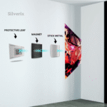 ⚠️ Ensure the position is final before applying, as the adhesive is strong. Step 4: Attach the Poster Magnet Attach the matching magnet securely to the back of the aluminium poster. Ensure correct alignment with the wall magnet. Step 5: Mount the Poster Align the poster magnet with the wall magnet. Gently place the poster onto the wall. The magnets will connect automatically, holding the poster securely.