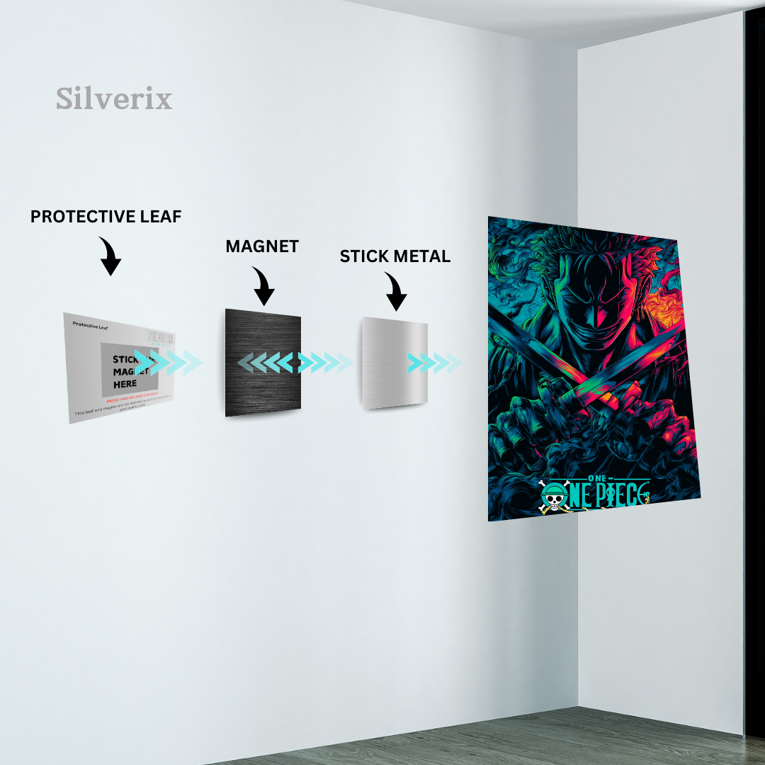 ⚠️ Ensure the position is final before applying, as the adhesive is strong. Step 4: Attach the Poster Magnet Attach the matching magnet securely to the back of the aluminium poster. Ensure correct alignment with the wall magnet. Step 5: Mount the Poster Align the poster magnet with the wall magnet. Gently place the poster onto the wall. The magnets will connect automatically, holding the poster securely.