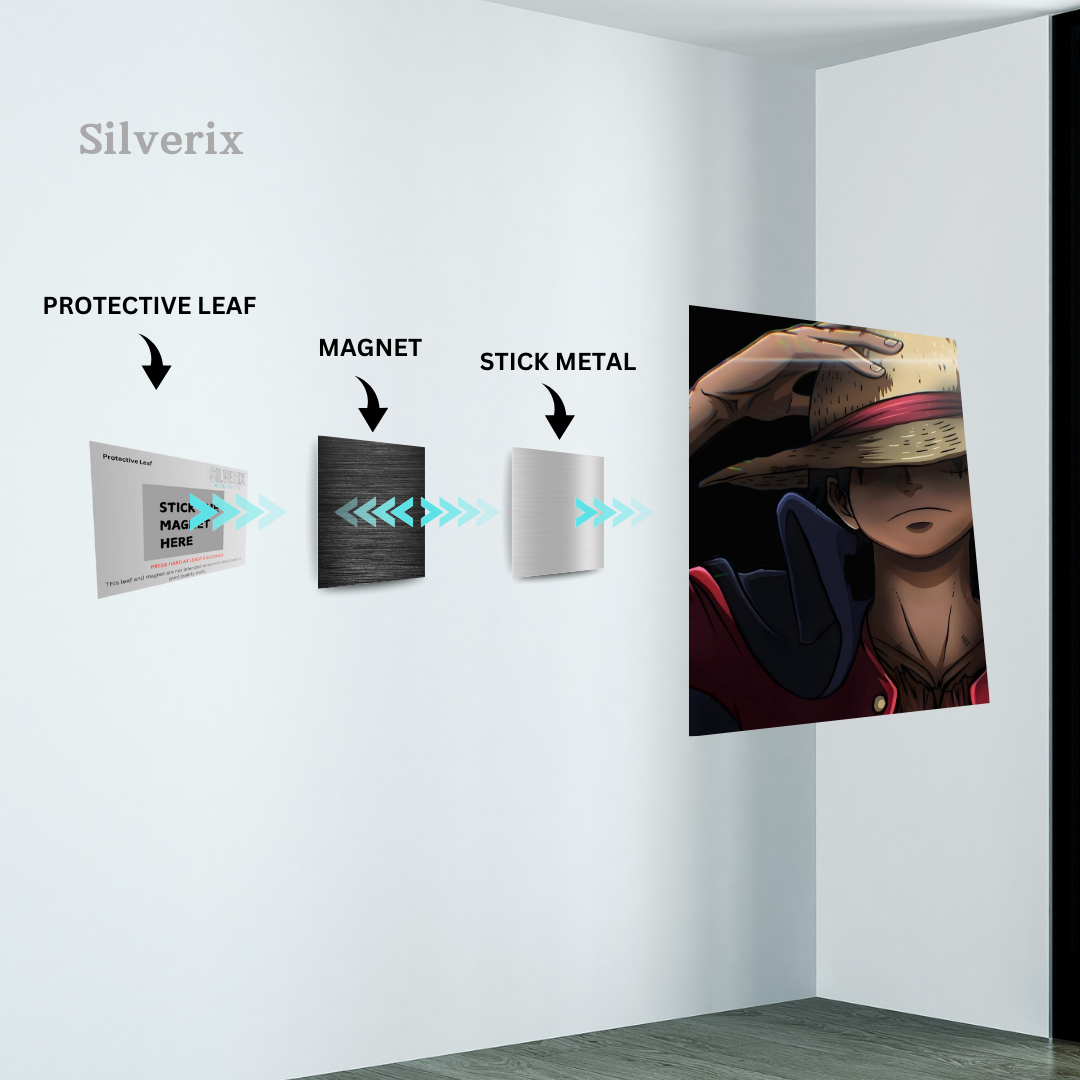 ⚠️ Ensure the position is final before applying, as the adhesive is strong. Step 4: Attach the Poster Magnet Attach the matching magnet securely to the back of the aluminium poster. Ensure correct alignment with the wall magnet. Step 5: Mount the Poster Align the poster magnet with the wall magnet. Gently place the poster onto the wall. The magnets will connect automatically, holding the poster securely.