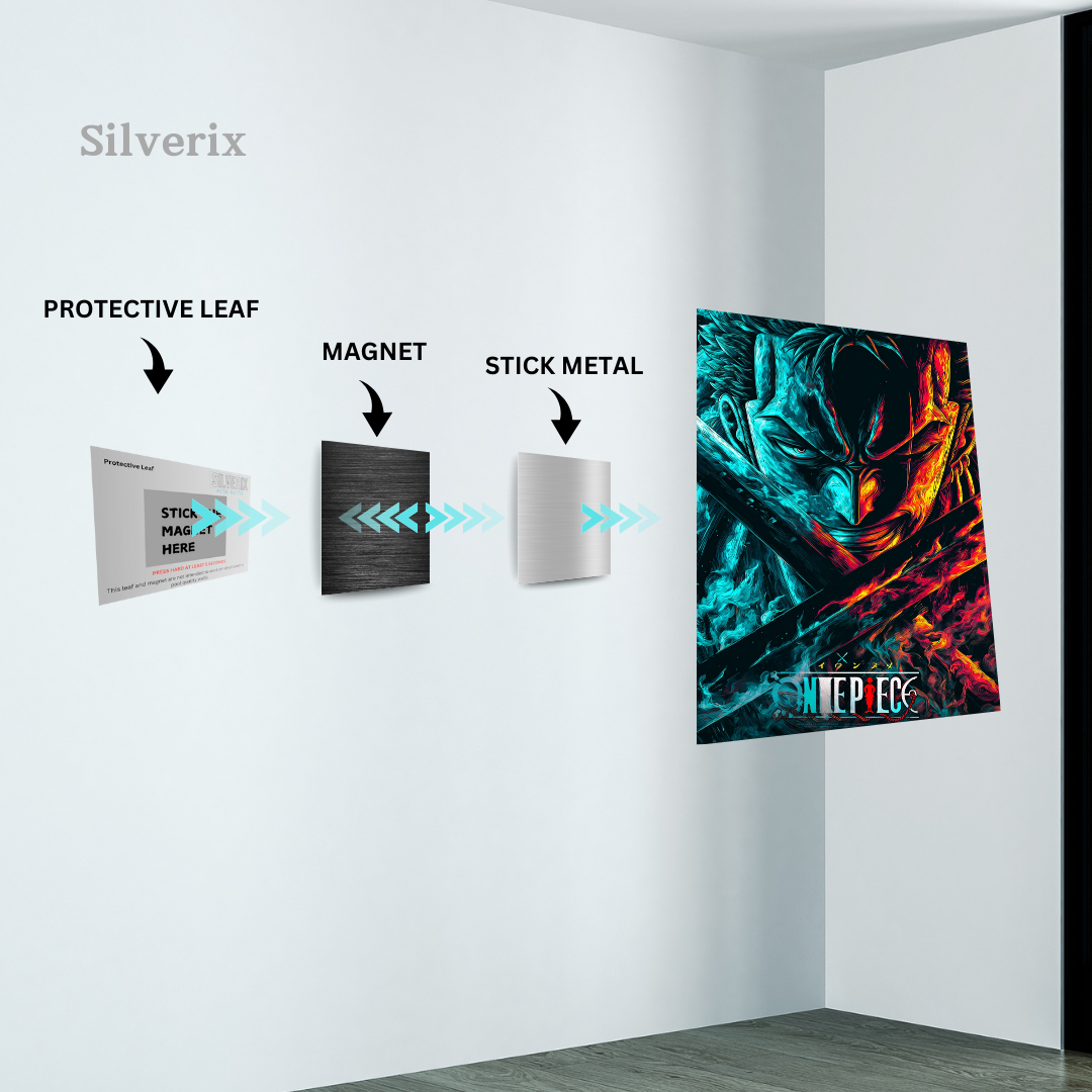 ⚠️ Ensure the position is final before applying, as the adhesive is strong. Step 4: Attach the Poster Magnet Attach the matching magnet securely to the back of the aluminium poster. Ensure correct alignment with the wall magnet. Step 5: Mount the Poster Align the poster magnet with the wall magnet. Gently place the poster onto the wall. The magnets will connect automatically, holding the poster securely.